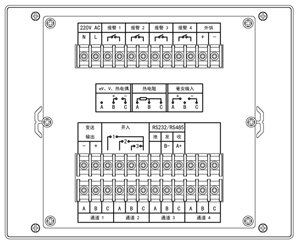 4組溫度傳感器如(PT100)信號接入智能溫度記錄儀表(YA504R)后可顯示4組溫度同時可記錄4組溫度數值。