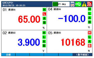 數字畫面除顯示4路測量值外,可以顯示設備名稱