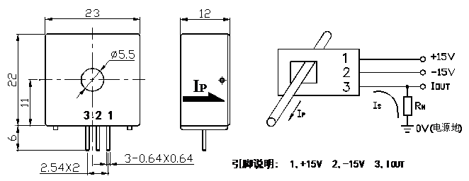 2、傳感器通電后,當(dāng)被測(cè)電流從傳感器箭頭方向穿過(guò),即可在輸出端測(cè)得同相電流值。