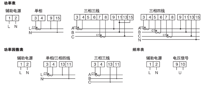 電流AC1A、AC5A、DC1A、DC5A、DC20mA等; 電壓AC100V、AC220V、AC380V、DC100V、DC220V、DC380V、DC75mV等 (可通過CP或PT擴展量程,訂貨時說明)