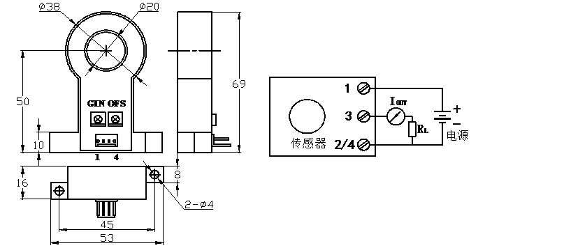 引腳說明:1,+24V2,0V(電源地)3,IOUT4,0V(電源地)OFS,零點調(diào)節(jié)GIN,幅度調(diào)節(jié)