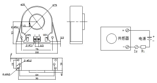 1、傳感器正確接線后,當(dāng)被測電流從傳感器穿過,即可在輸出端測得相應(yīng)的電流值。