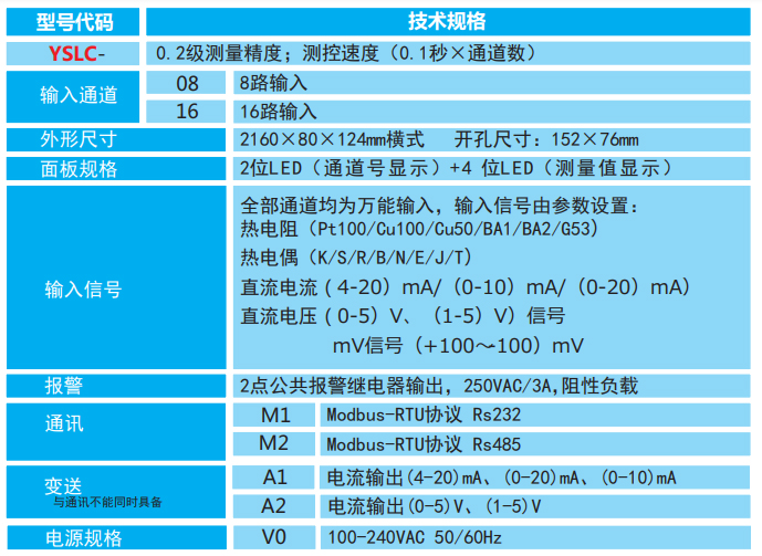 8路溫度巡檢儀:YSLC-08V0 面板尺寸: 160×80×124 mm 橫式 開孔尺寸:152×76 mm