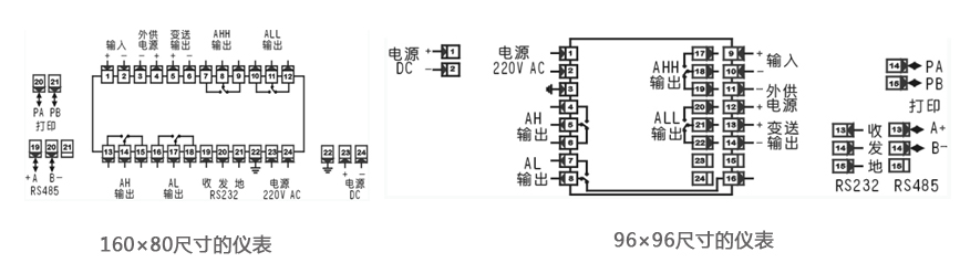 4、可選配1~4點(diǎn)報警輸出。包括測量值上限、測量值下限、偏差上限、偏差下限、偏差絕對值五種基本報警方式和與五種基本報警方式對應(yīng)的五