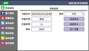 記錄儀同時(shí)記錄報(bào)警記錄、掉電記錄、操作日志,各256條記錄,循環(huán)存儲。