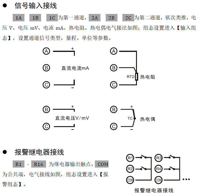 熱電偶和熱電阻等工業(yè)標(biāo)準(zhǔn)信號,可同時(shí)配置報(bào)警繼電器輸出、電流變送輸出等功能。實(shí)時(shí)采集信號、保存通道數(shù)據(jù),形